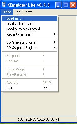 - Sau khi tải về máy tính bạn dùng Winrar giải nén. (Giải nén bằng cách click phải chuột vào file vừa tải về là KEmulator_litev0.9.8.zip chọn Extract to KEmulator_litev0.9.8). Sau khi giải nén xong ta chạy KEmulator. Khi xuất hiện màn hình KEmulator ta chọn Midlet -> Load jar... rồi tìm đến file Java cần chạy là xong. Về phần điều hướng di chuyển trong game ta có thể dùng phần phím số bên phải bàn phím để điều khiển hoặc vào View -> Keypad nó sẽ hiện ra 1 bàn phím nhỏ bên cạnh chương trình.